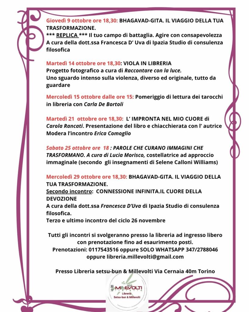 Tel. 011/543516 oppure SOLO WHATSAPP 347/2788046 libreria.millevolti@gmail.com