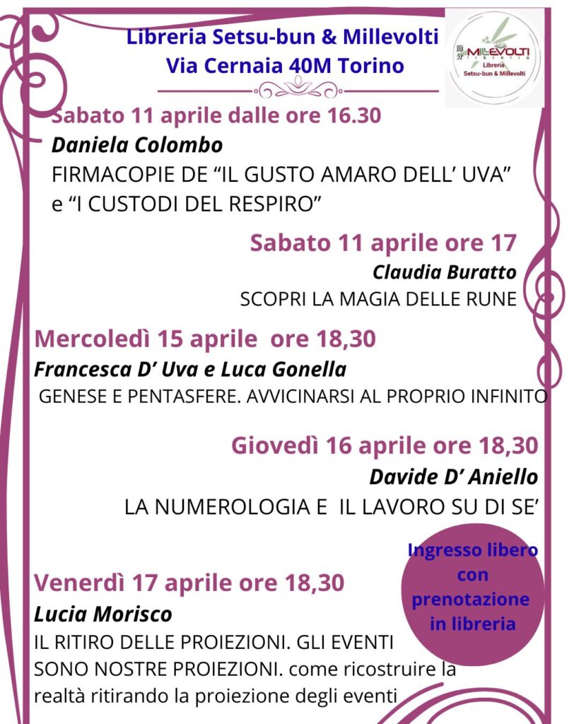 Gli incontri sono ad ingresso libero con prenotazione obbligatoria in libreria